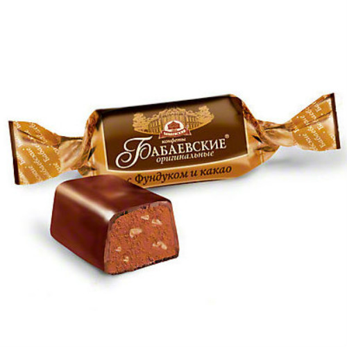 Конфеты  Бабаевские Оригинальные с фундуком и какао производства кондитерского концерна Бабаевский можно купить оптом с доставкой по Москве, Подмосковью и ЦФО. Низкая цена обусловлена отсутствием посредников при наличии прямого договора с производителем. Все актуальные сертификаты в наличии. Минимальный заказ: 1 коробка
