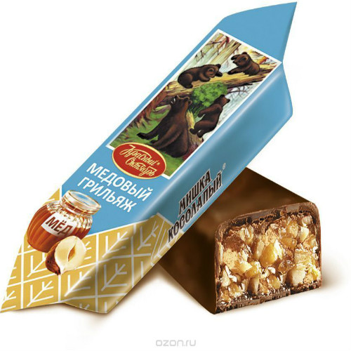 Конфеты Мишка косолапый Медовый грильяж производства Красный Октябрь можно купить оптом с доставкой по Москве, Подмосковью и ЦФО. Низкая цена обусловлена отсутствием посредников при наличии прямого договора с производителем.  Все актуальные сертификаты в наличии. Минимальный заказ: 1 коробка
