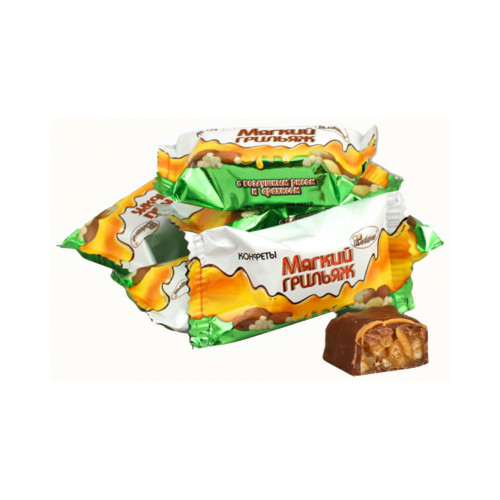 Мягкий грильяж с воздушным рисом и арахисом производства кондитерской фабрики "Акконд" можно купить оптом с доставкой по Москве, Подмосковью и ЦФО. Низкая цена обусловлена отсутствием посредников при наличии прямого договора с производителем. Все актуальные сертификаты в наличии. Минимальный заказ: 1 коробка