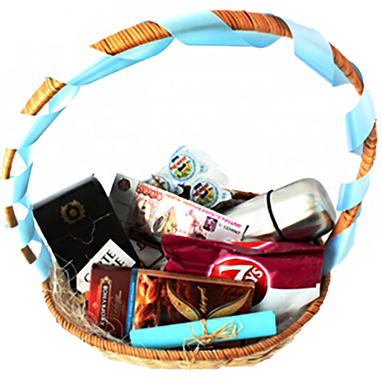 Cостав: корзина, термос, кофе, сливки, круассаны, шоколад Коркунов, магнит и поздравление Инкассаторам.