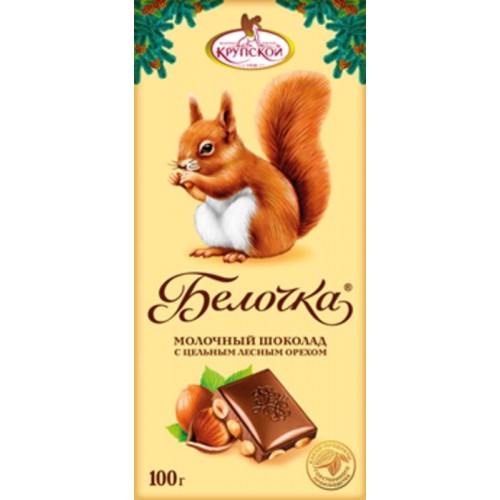 Шоколад молочный 100 грамм "Белочка" производства кондитерской фабрики имени Крупской можно купить оптом с доставкой по Москве, Подмосковью и ЦФО. Низкая цена обусловлена отсутствием посредников при наличии прямого договора с производителем. Все актуальные сертификаты в наличии. Минимальный заказ: 1 коробка